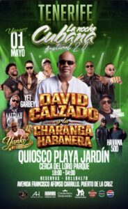 Das Cuban Night Festival 2.0 findet statt am1. Mai 2026 am Kiosk Playa Jardín (Puerto de la Cruz), Teneriffa. Die Veranstaltung, die von 18:00 bis 4:00 Uhr stattfindet, bietet einen Auftritt von David Calzado und seiner Charanga Habanera Band. Geboten werden karibische Musik, Salsa-Rhythmen und Timba.